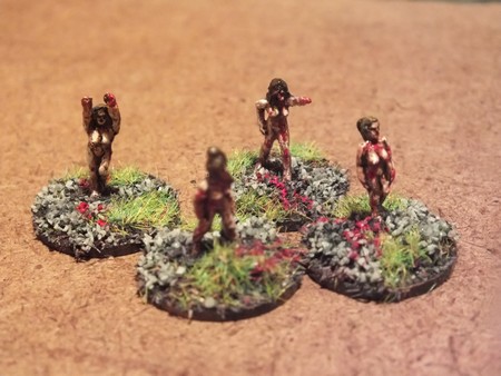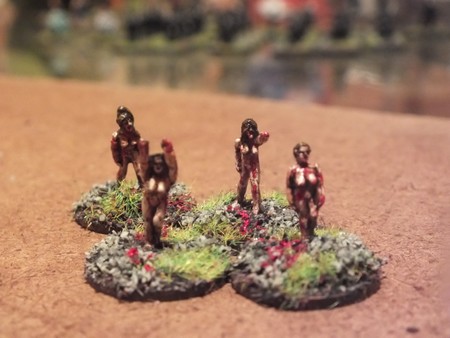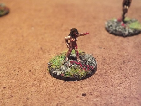 My wife got me some assorted minis from ebay last week, in amongst them were a pack of 15mm nude women from Peter Pig, not having too much use for naked chics other than an odd sacrificial victim or such, I decided they would be better served as zombies. You’ve see the movies at some point there is a naked chic zombie wandering around etc. So with that in mind, I present some new undead additions to my horde. Warning, this post contains tits, look away if you are offended by tiny naked zombie women.