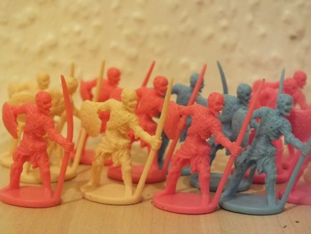 The figures come in the rubbery soft plastic that you find in cheap toys, not that that is a bad thing (Well, not too bad, no worse than Reaper Bones polymer figures as its pretty similar) Nor is the horrible tri colour choice they come in (This is easily painted over) Any way here’s a few pics to illustrate for those of you who haven’t tried them out.