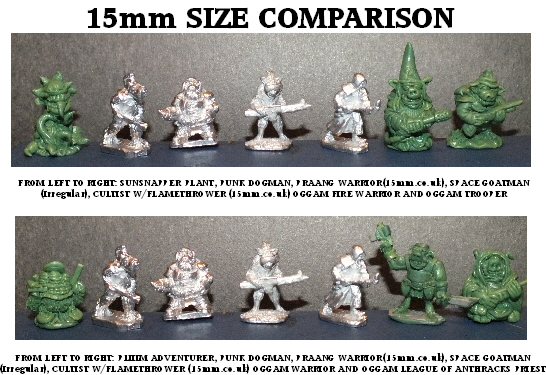 Finally to get the sizes into perspective, here are some size comparison shots of said sculpts next to some 15mm figures to how you how they will fit in with other ranges. Please bear in mind, the oggam figures are chunky, and they are meant to be that way! If you crossed a genetically modified food producing giant pig with human DNA, they would turn into large ogre type creatures (well, that’s how I had intended them!)