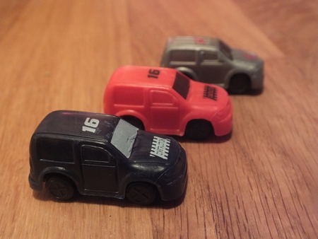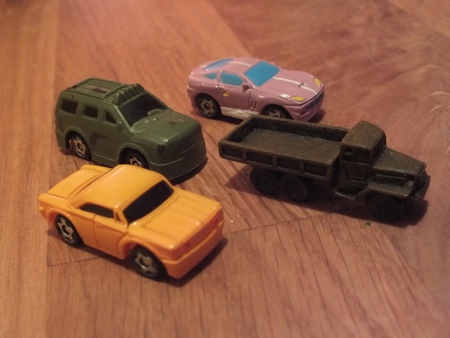 On to these of which you can see, one is the inferior crappy plastic (The army type 4×4) and the other two are the better made Micromachine rip offs. All are getting a repaint, the green one will get painted as a UK police 4×4, while the others will be toned down a little with more of a normal street car feel.