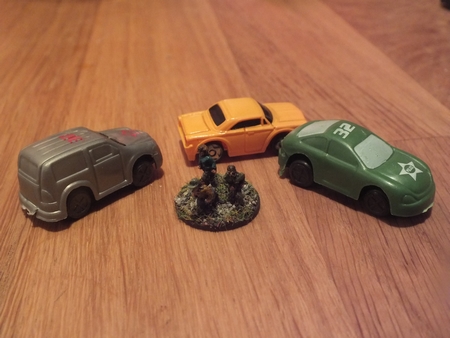 A trip to the local poundland/99p stores turned up this great little pack of “not” micromachine type cars, and as I’m busy putting stuff away ready for when Pendraken’s 10mm zombie range comes out, these are going to be a great addition to modern city stuff for my board.