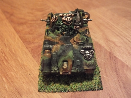 As for my opposing side from the Empire of Og, up to press I have two units of oggam light infantry done (well, there’s a unit away on photo duties elsewhere…) but, they do have vehicle support from a finished converted APC, complete with custom sculpted tank commander. I have a Trog transporter on the go as well, but that aint finished yet (you can see the undercoated vehicle in the pic) these dudes even have a allied Scrofa Truffle miner and his loyal pigdog in tow, hired to root out precious fungi for the boss!
