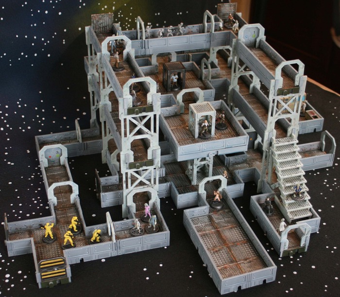 Forget about the accompanying miniatures, this has shades of Necromunda all over it, and will fit any number of scifi wargaming scenarios too. It’s a nice bit of engineering, looking to be pretty versitile with its modular nature.