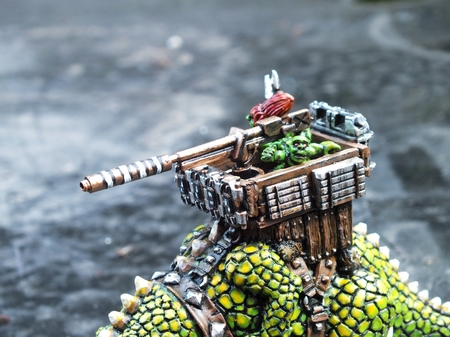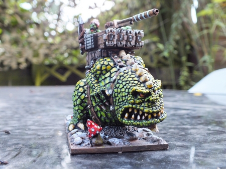 To carry on with my 15mm space orc lot, I thought I’d share my latest addition to them, my squiggoth. It’s a repurposed scotia-grendel 28mm warbeast (a Kev adams sculpt I think) that I had knocking around. With an added howdah and a large cannon (plus a few random snotlings as 15mm grots for crew, it’s shaping up nicely.