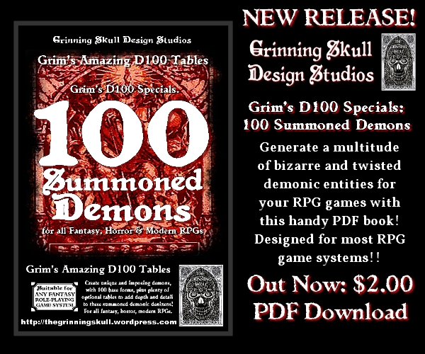 Back once again with yet another (yes, really another one!) release from Grinning Skull, with 100 Summoned Demons for all fantasy, horror & modern RPGs.