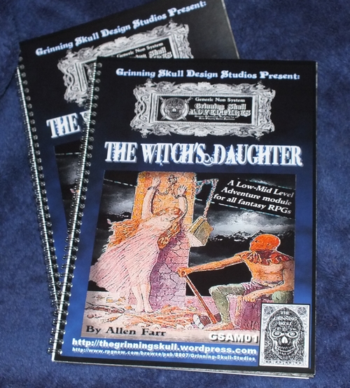 I hope to produce limited runs of several titles over time and offer them for purchase to see who would be interested in having a copy (If your interested in getting a copy in this or another format, please get in touch and I’ll give you more details) Print titles planned for this A4 format (Probably more likely to be in A4 Saddle-stitched format) will include Modules GSAM01 The Witch’s Daughter (Above) GSAM02 Singularity (Sci-fi adventure, coming soon) and GSAM03 Betrayal at Tarsus Mor (fantasy adventure, coming soon), plus there will be Grinning skull’s Book of Riddles (an edited and combined edition of 100 Riddles volumes 1 & 2), A collected and added to version of Grim’s Dungeons of Doom articles found on this site, and the next Grinning Skull Compendium/Annual for 2017.